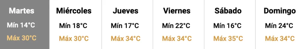 El jueves se preve tiempo estable, con una temperatura máxima de 34 grados y cielo parcialmente cubierto. Soplará viento predominante desde el cuadrante norte, con intensidad leve a moderada.