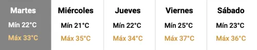 El jueves se espera el cese del alerta por tormentas, con nubosidad en disminución y cielo parcialmente cubierto por la tarde. La temperatura máxima alcanzará los 34 grados y soplará viento en direcciones variables, con intensidad moderada.