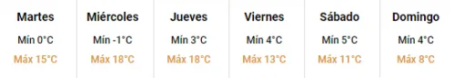 Para este martes se espera que el viento del sector Sur se mantenga por la mañana haciendo descender la temperatura, a una mínima de 0° y una máxima de 15°.